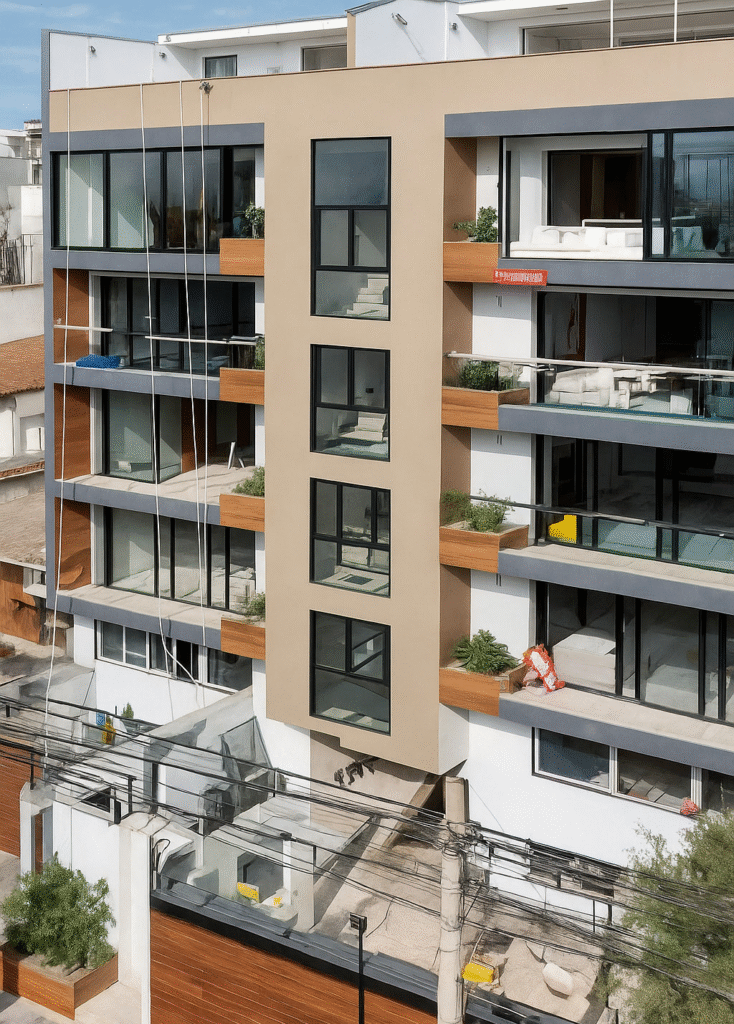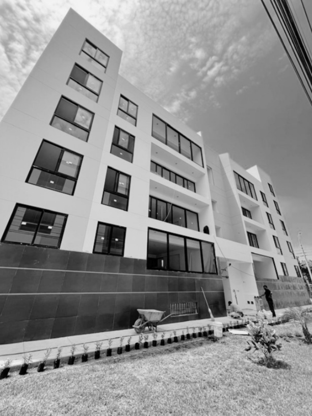 Es un edificio multifamiliar que cuenta con 8 FLATS y 2 DUPLEX.